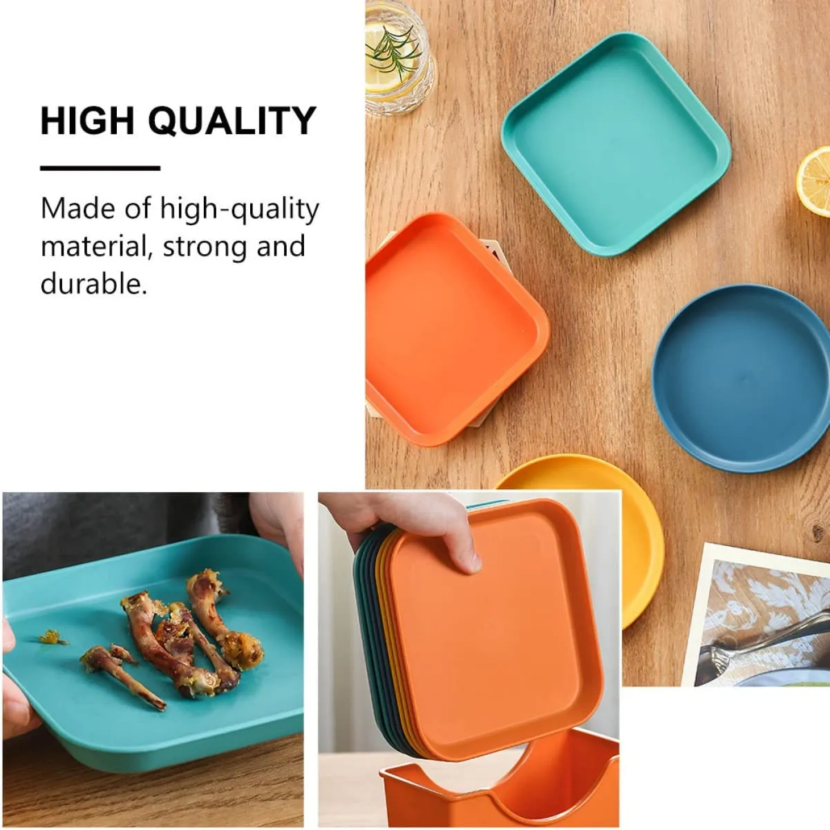 PACKAGE CONTENTS: Seat of 10 Colorful breakfast plates 14.5 x 14.5 cm with stand. Unbreakable Virgin Plastic Plastic Microwave Safe Dinner Plates
