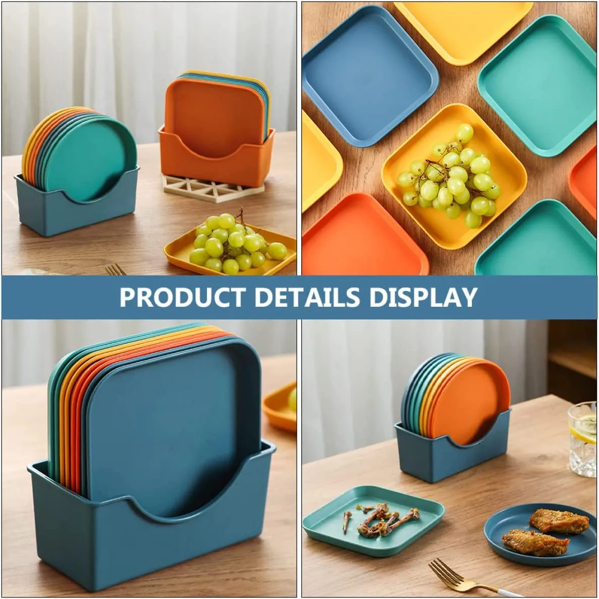 Product details of Square Plastic Dinner Plate Set (Set of 10 Pcs) Colorful Snacks / Breakfast Plate with Stand