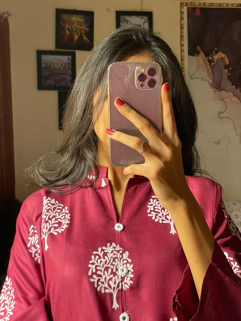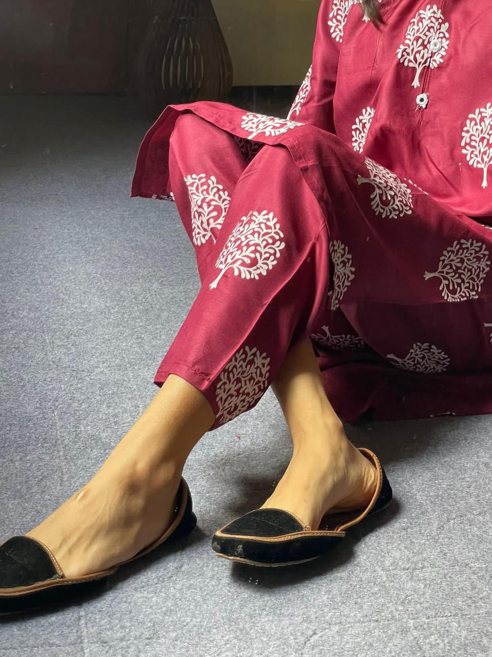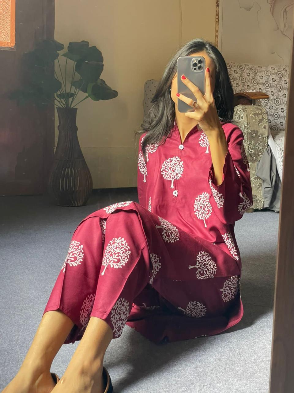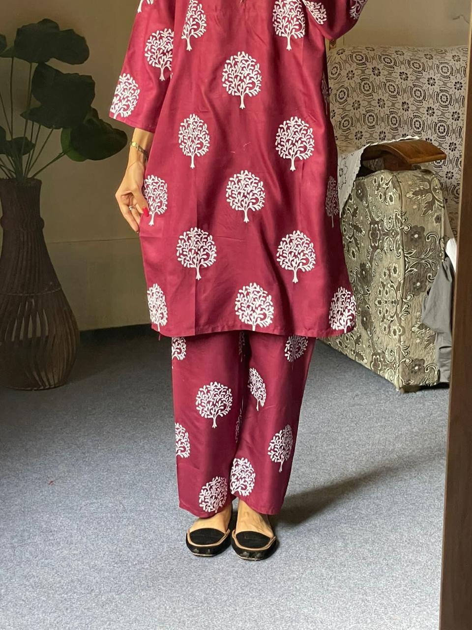 2 Pc Tree Design Beautiful Printed Shirt + Trouser (Maroon)