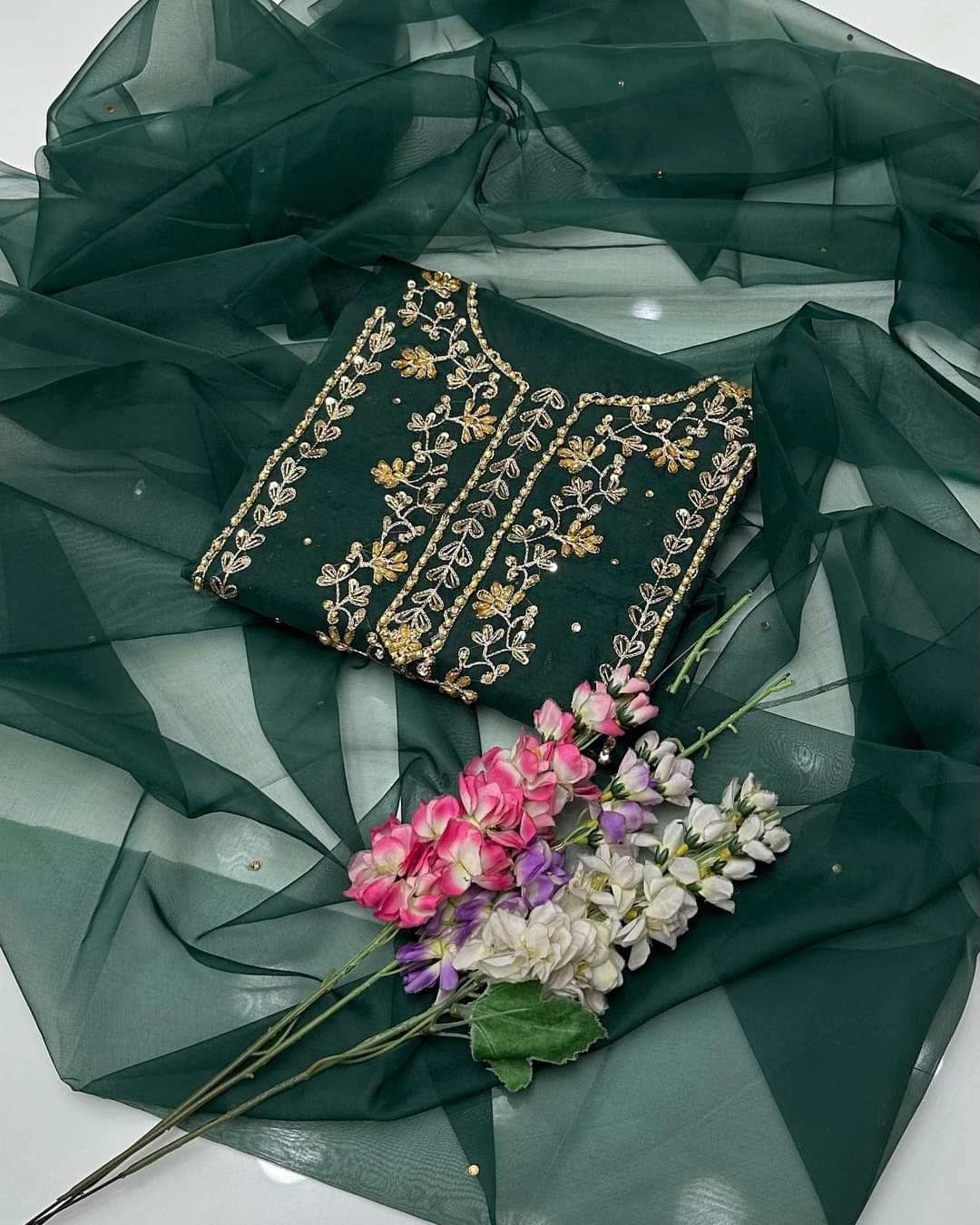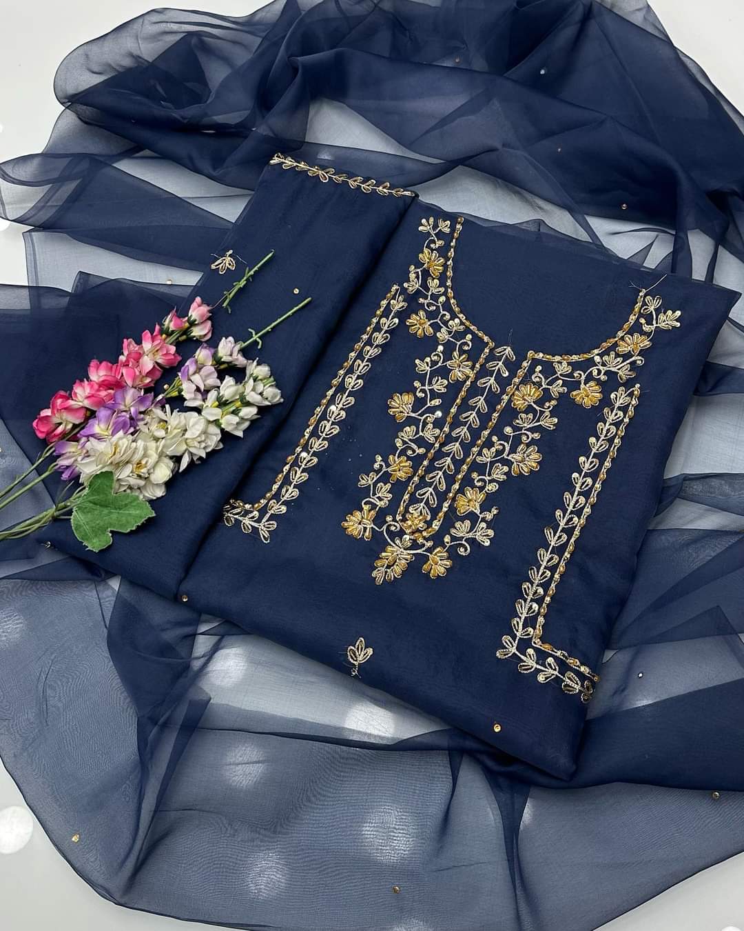 Organza zarri beads work shirt and dupatta