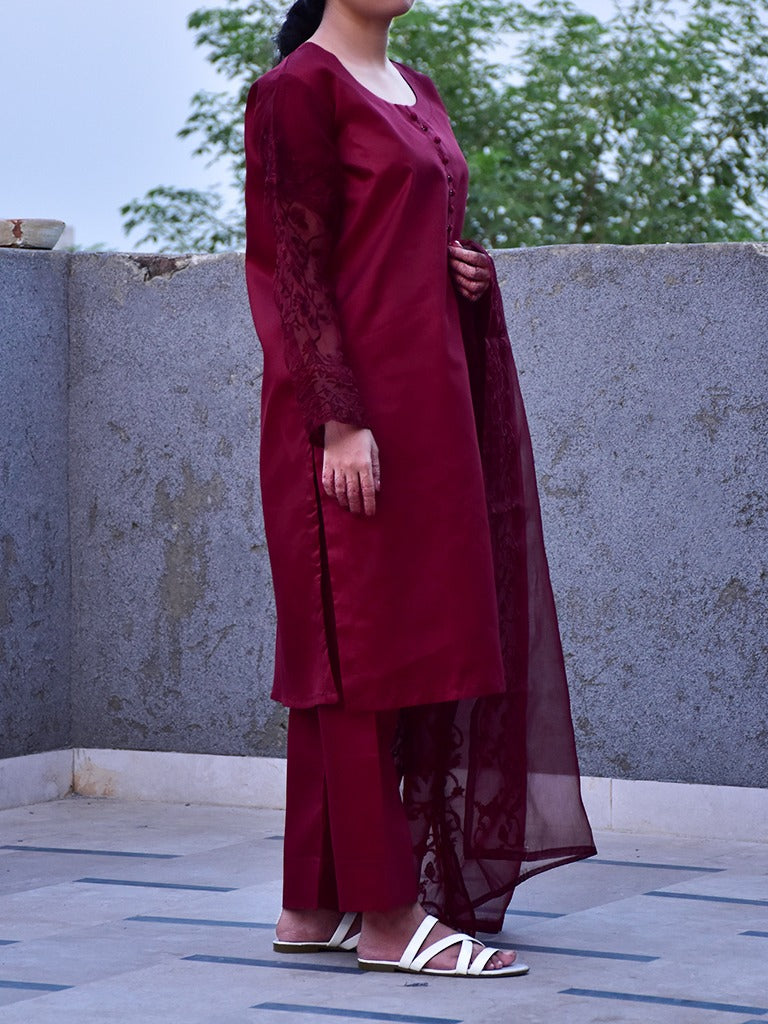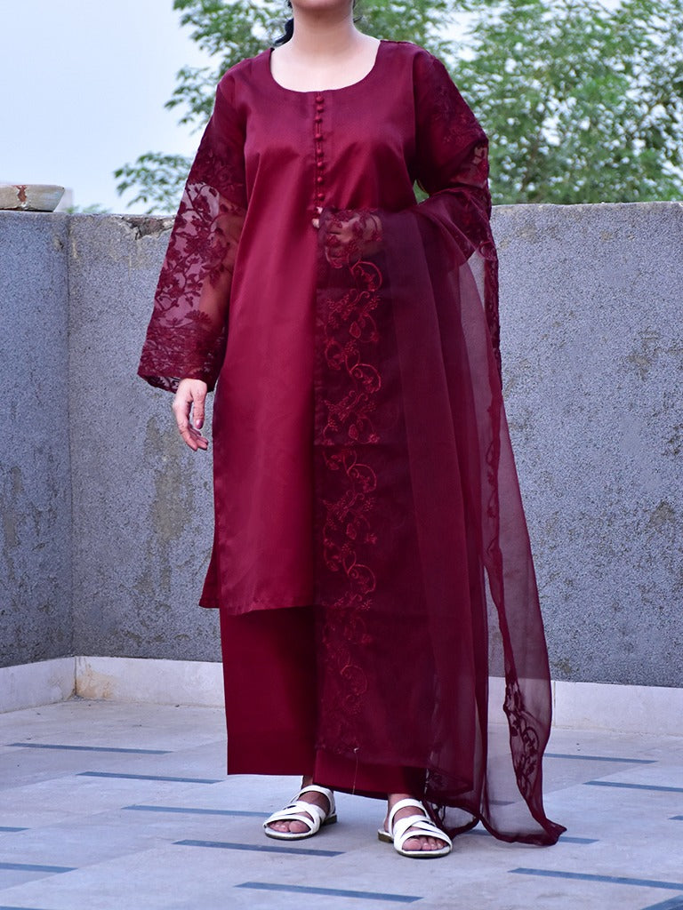 3 Pcs Beautiful Katan Silk Suit for women and young girls