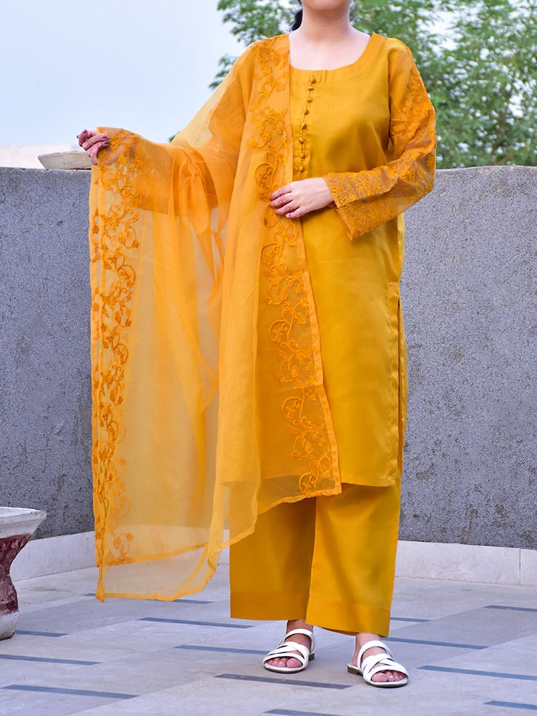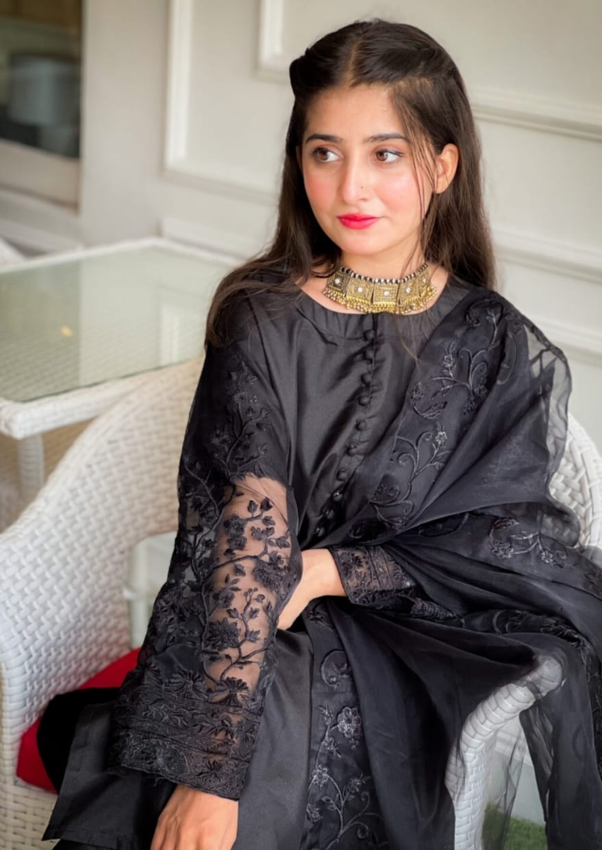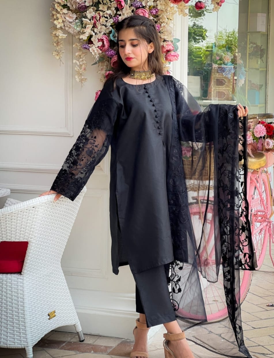 Product Name: Katan Silk 3 piece suit for women and young girls Product Description: 3 Pcs Beautiful Katan silk Dress Dupata Embroidery work Product Details: • Fabric: Katan silk • Size: Medium & Large • Chest size shirt:20/22 •Length:37/38 Trouser:37/38 • Dimension: (Shirt &Trouser Length:37/38 Inches)(Trouser Length: 37 Inches) Quality Super fine💯 Stitched Quality 💯 Amazing Quality 💯