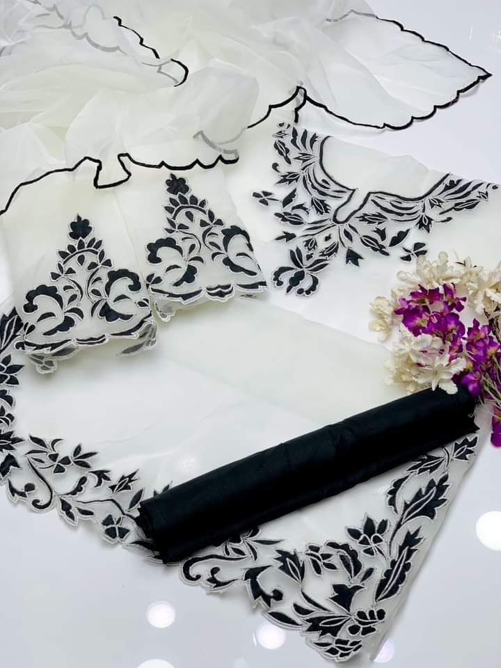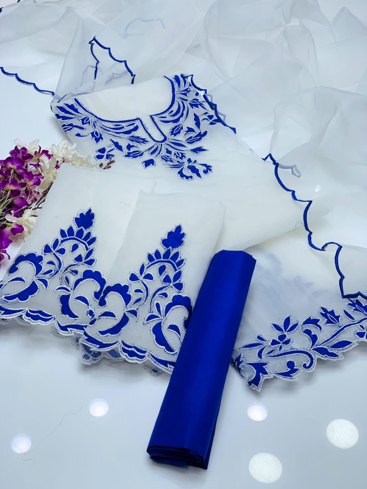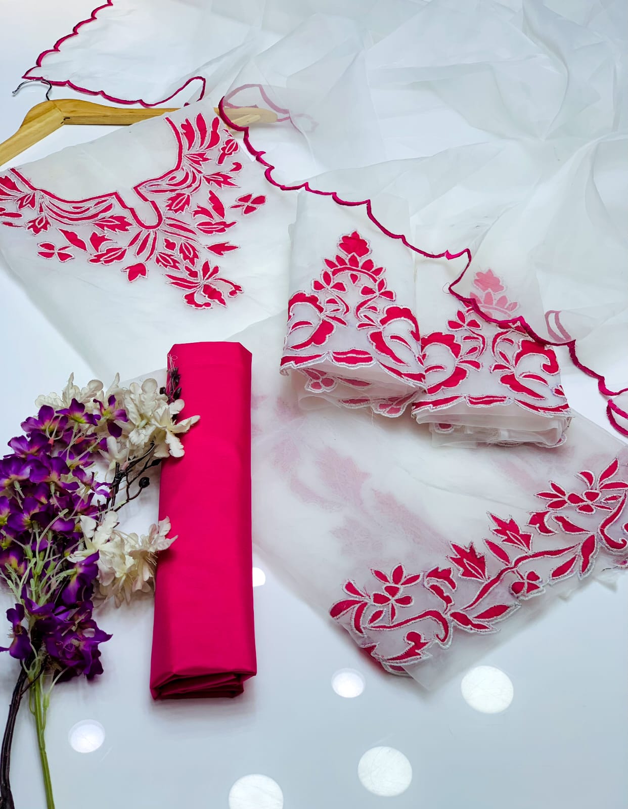 Organza apliq embroidery shirt, work on neck, sleeves, damman, chak